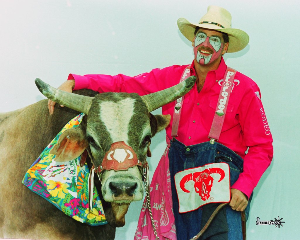 Bad Co. Rodeo was bless with the best mascot anyone could ask for in “Party Animal”. A true to life bucking bull willing to take on the task of promoting Bad Co. Rodeo through being a gentle giant. Being gentle and loving to all who wanted to experience him up close, while at the same time a fierce competitor to anyone wanting to try and make an eight second ride upon his back. I tried my hand at him many a time! Some successful and sometimes not. Truly I find myself the winner to have experienced such a magnificent animal ! Thanks to Mack for making it all happen !